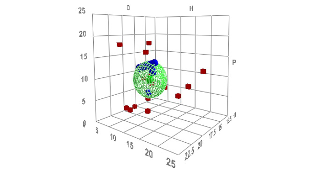 Entsprechend dem Prinzip der Hansen - Solubility - Parameter (HSP) werden die Parameter δD - Dispersion, δP - Polarität und δH - Wasserstoffbrückenbindung für dispergierte Teilchen ermittelt.
