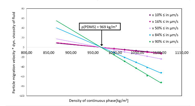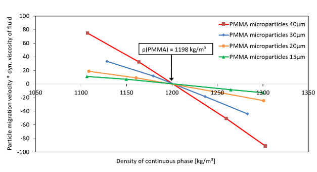 Determination of the particle migration rate in continuous phases with different densities.